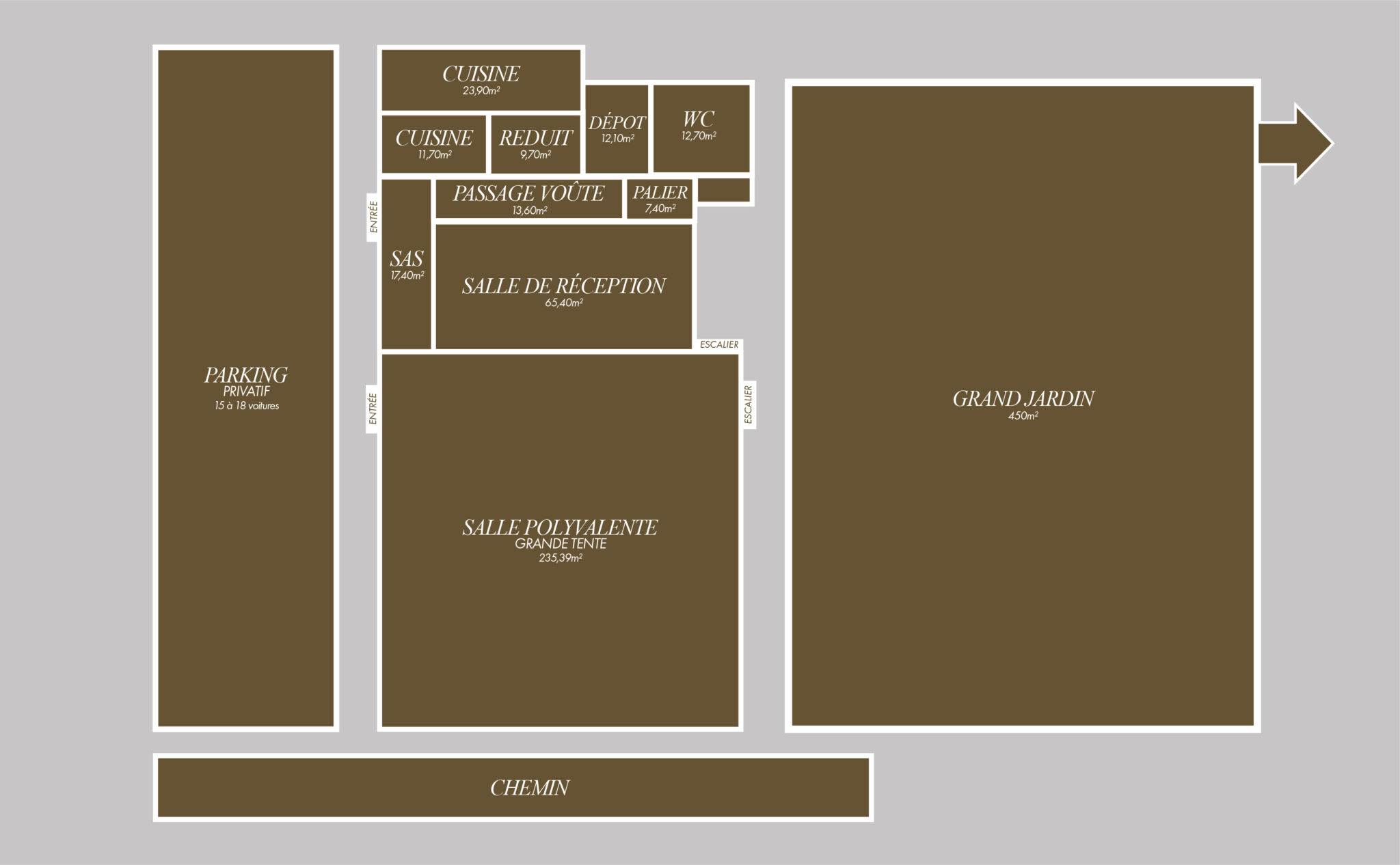 • Salle attenante de 65m²